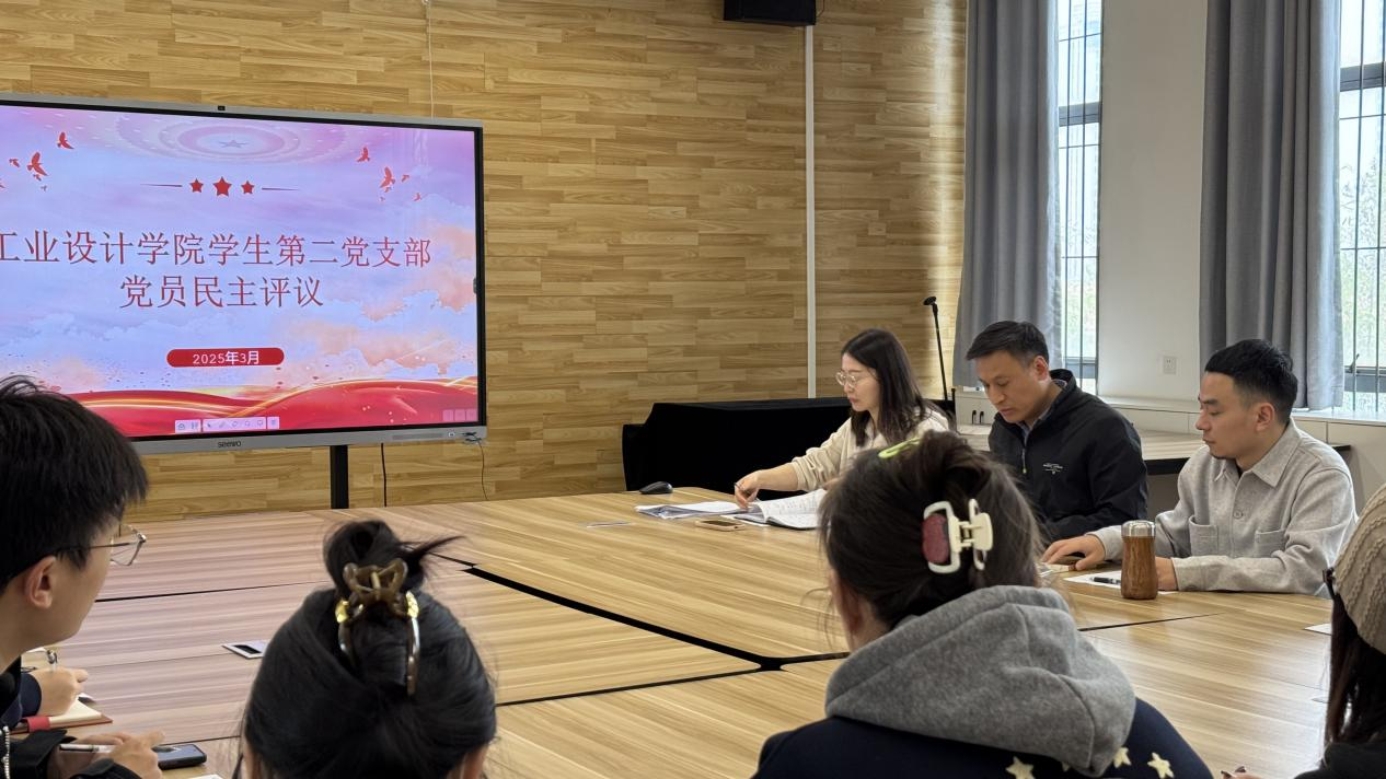 2024年3月28日下午工业设计学院学生第二党支部召开专题组织生活会暨民主评议党员大会,工业设计学院学生第二党支部在A6-212会议室召开2024年度组织生活会暨民主评议党员大会。学院党委书记李军参会点评,支部书记龚乾主持会议,支部全体党员参加。