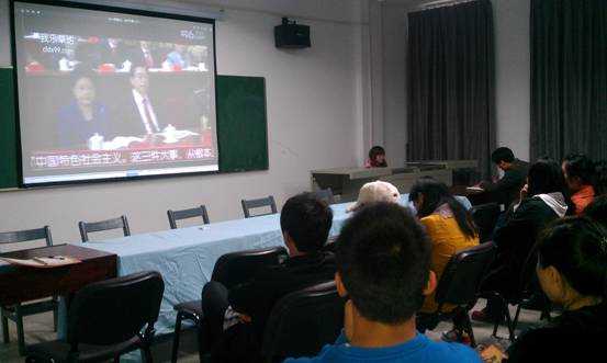 首先由分团委副书记范晓春为大家放映了视频《胡锦涛讲话之三大事件》,《四大考验和四大危险》,《五个必须坚持》,在胡锦涛同志长达两个多小时的讲话中我们深刻了解到不断推进党的建设制度化是把握时代潮头,引领社会进步,提高党的执政水平的重要环节。接着范晓春和大家分享了学习心得,指出这是一份深入贯彻科学发展观的马克思主义纲领性文献,作为学生党员要认真体会讲话精神,张孟泽同学也表示要坚持尽自己应尽的责任和义务,做一名合格的中共党员。