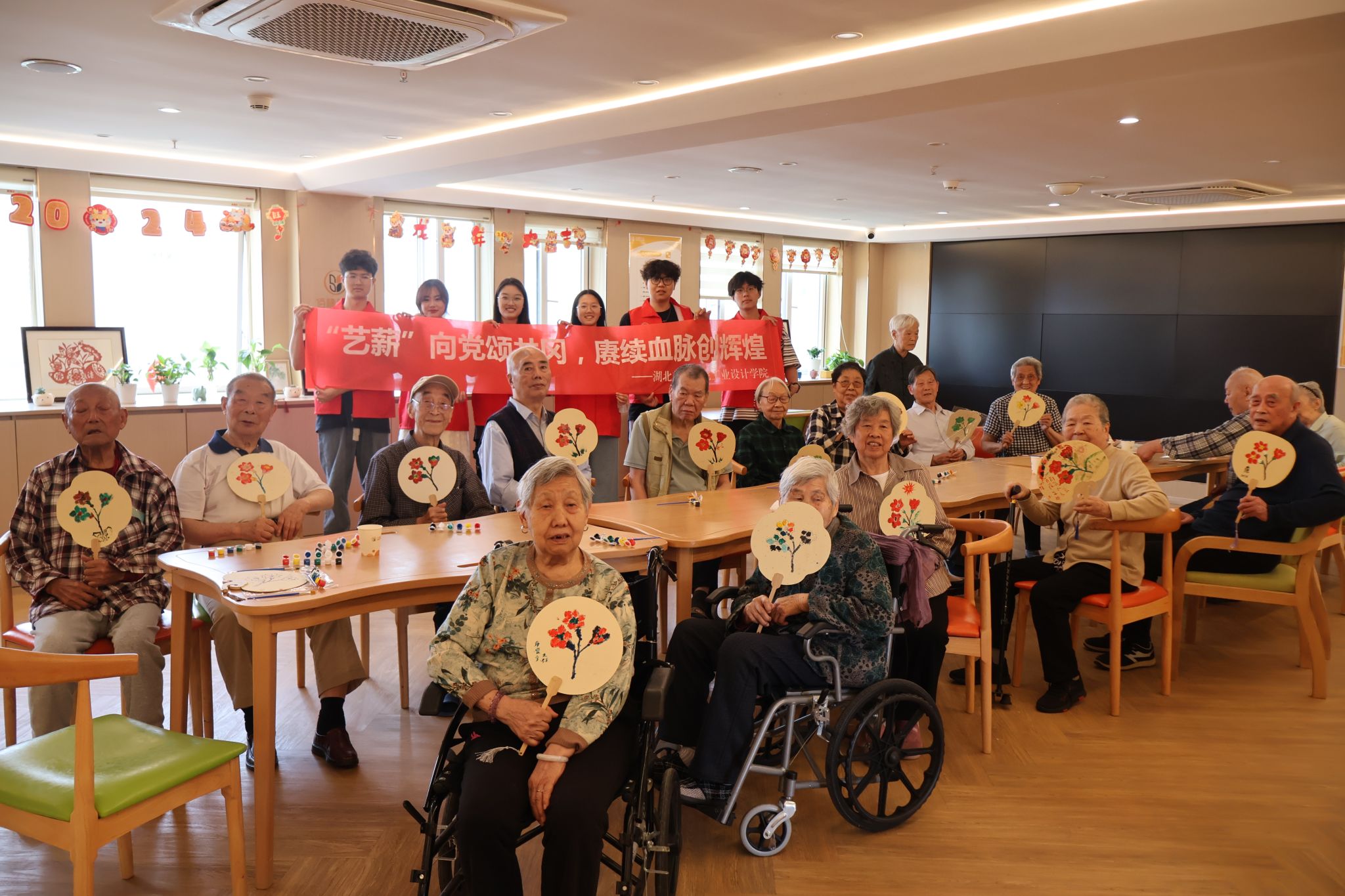 宣讲过后,宣讲团成员带领现场老人开展了“井冈山杜鹃花”创意团扇创作,丰富了老年人精神生活。佛祖岭街道佰穗养老中心朱经理表示,本次活动让现场几代人对井冈山精神有了更深刻的领悟,也给予了老人们一段艺术创作的美好时光,意义非凡。