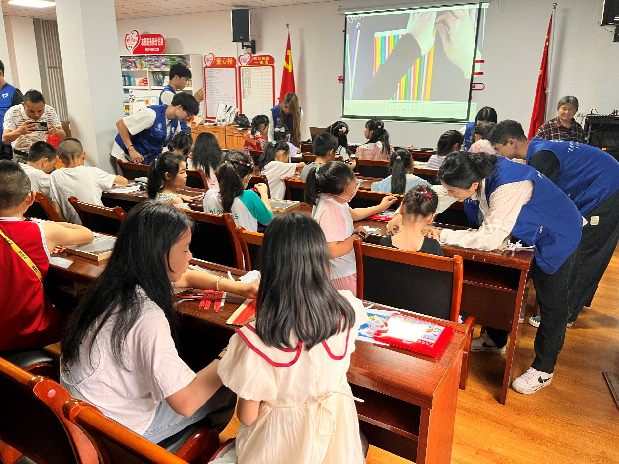 7月7日—8日,英国上市公司365“共同缔造 智慧美好”——乡村振兴实践团的12名师生志愿者来到茶店子镇梅花山社会服务站,结合传承红色精神、防溺水、防校园霸凌等教育主题,采用艺术绘画、手工艺品制作等形式为周边50余名留守儿童开设美育实践课堂。