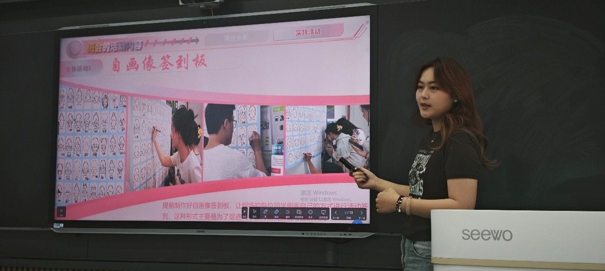 2024级产品设计二班、三班以“悦纳自我 向阳而生”为主题,团队通过画像签到板、夸夸镜互动墙、破茧心灵圈等活动,引导学生在艺术创作中探索自我价值。