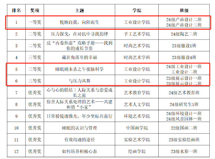 一等奖项目: 2024级产品设计二班、三班联合设计的“悦纳自我、向阳而生”班会,巧妙运用“自画像”、“夸夸镜”等互动游戏,引导同学们勇敢表达、发掘自身优势。