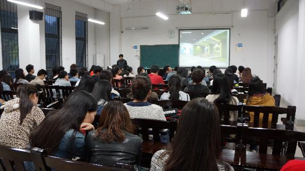 交流会开始,赵航学长回忆起了自己的大学时代,以自己的阅历与学弟学妹们就大学学习、生活等方面分享经验,对如何有意义地度过大学生活提出了自己的感悟,为学弟学妹们提供很好的指导。接着,学长与大家分享了自己毕业后创业的酸甜苦辣,介绍了武汉再度设计有限公司发展历程,讲述了自己从一名大学生到一个公司的领导和一名设计师的成长历程,以自己毕业5年的经历为在场的同学们上了生动的一课,他独到而精炼的见解也深深地影响了同学们。