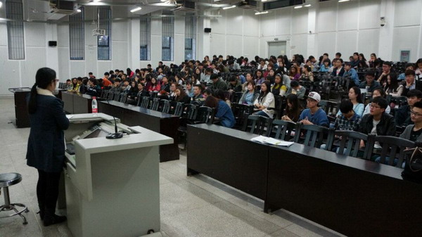 讲座主要围绕为什么进行四级备考、如何备考等问题展开。首先主讲人毛老师对四级试卷改版问题做了简要说明,着重对试卷构成和应对策略做了深刻剖析,同时强调了考试注意事项和考试流程。讲座中,同学们聚精会神,认真聆听并在重要的地方做适当的笔记。毛老师诙谐幽默而又严谨的语言引来了同学们的阵阵掌声。讲座过程中还穿插了学生提问环节和英语趣味问答环节。通过老师与学生间的互动带动了大家积极性,有趣的问答环节更是使现场气氛高涨。英语的独特魅力也在这场短短一个多小时的讲座中展现的淋漓尽致。