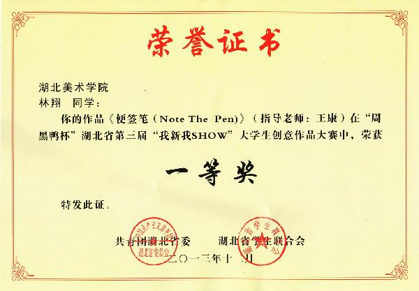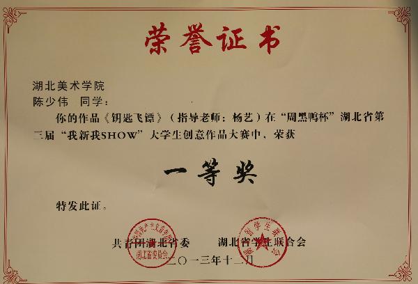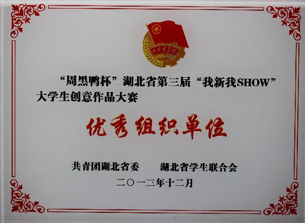 “周黑鸭杯”湖北省第三届“我新我SHOW”大学生创意作品大赛,是我省大学生社团文化节的重要活动之一,每年举办一次。大赛旨在激发大学生创意灵感,增强创新实践动手能力,把创新的灵感内化为努力学习的动力。大赛作品包括DIY创意制作、造型文化创意设计、旧物改造创意设计、公益创意设计类和其他。所有入围决赛的作品在大楚网上进行为期一周的作品展示,并进行网络投票。决赛采用作品展示、现场解说和选手答辩相结合的方式进行(同时参考网络投票况)。
