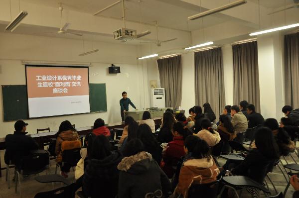 为了更好地做好2014届毕业生就业工作,12月20日上午10:00,工业设计系在A6教学楼210多媒体教室举办了优秀毕业生与在校生面对面交流座谈会,武汉烽火科技集团设计部设计师张立作为优秀毕业生代表受邀返校参加座谈会,系主任张锐、辅导员李军以及在校生参加了本次座谈会。
