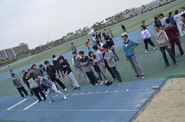 在100米、400米的赛道上,运动员健步如飞,奋力向终点进军,不甘落后,一批运动健将凸显出来。参加实心球的运动员,运用手臂、腰部和腿部力量,用力向前投出手中的这个沉甸甸的实心球,旁边喝彩声此起彼伏。跳远的同学也不甘示弱,即使有些同学刚刚测试完跑步项目,但依旧激情不减,使出全身力气。有些女生是第一次接触沙坑跳,有畏惧心理,在大家的鼓励下,慢慢平静,投入到测试中去。比赛结果达到了预期的目的。同学们在活动中不仅提高了协作配合性,还体会到了集体活动的乐趣。