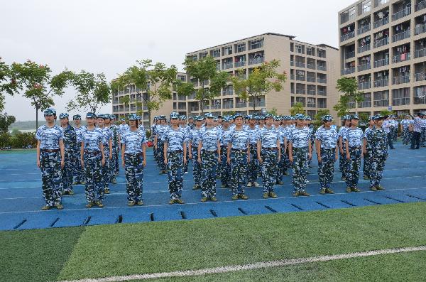 大学生军训作为大学生进校的第一堂课,在每位大学生的成长过程中至关重要,磨练学生的意志,考验他们的毅力,相对高中的军训要更加严格,但同学们依然以饱满的热情迅速的投身到训练当中,认真的学习站军姿、稍息、立正、蹲下、起立、齐步走等各种练习项目。他们的汗水与青春,在秋月的凉风中成为一道美丽的风景线。而另一道风景线则是漂亮的女教官们,她们巾帼不让须眉的姿态给学生们留下的深刻的印象。