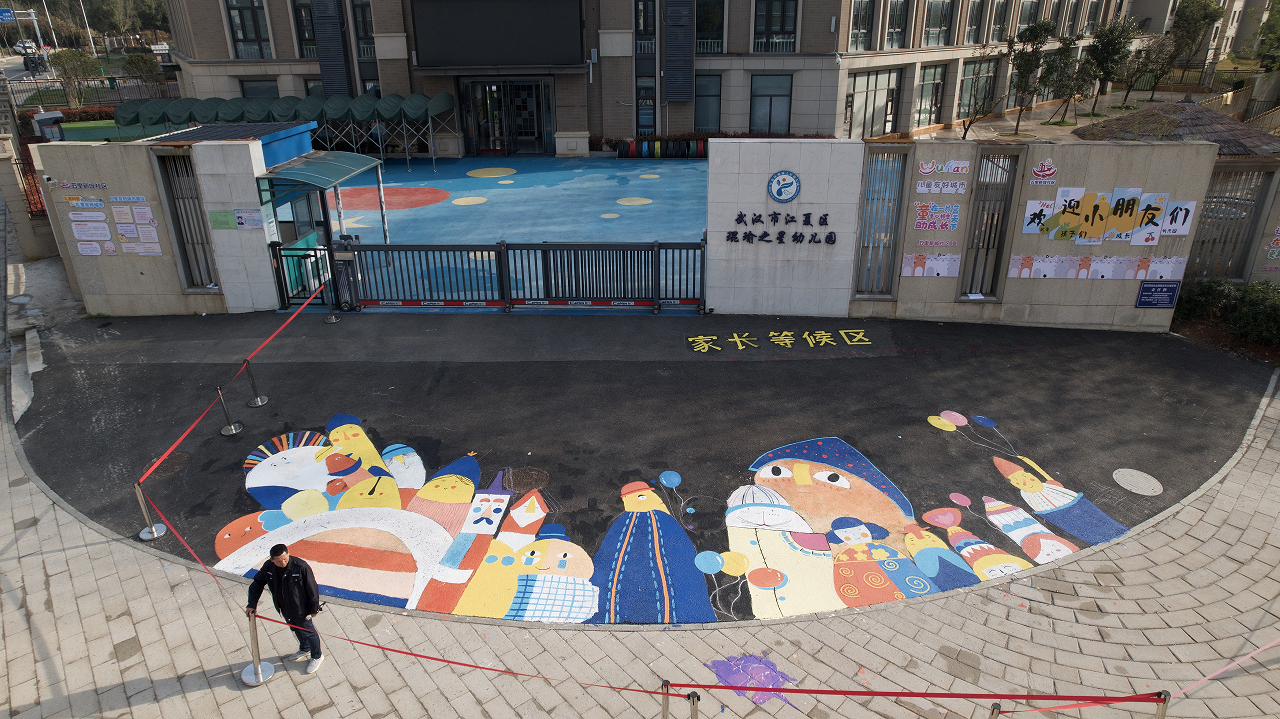 师生志愿者利用无声绘画语言,以“我爱五里界”理念为创作主体,在绘画设计中融入“多元卡通形象”、“中华非遗纹样”、“中国传统色彩”等艺术元素和“江豚”、“黄鹤楼”等荆楚IP文化符号,将中国传统文化教育、劳动教育、感恩教育、安全教育等充分展现在各个社区场景,用较强的视觉艺术色彩体现了“儿童友好”主题,充分发挥美育的隐性教育功能,帮助社区居民在美育浸润中进一步感受美、认知美、传播美,活动吸引了大量社区群众驻足拍照并参与接力绘制。