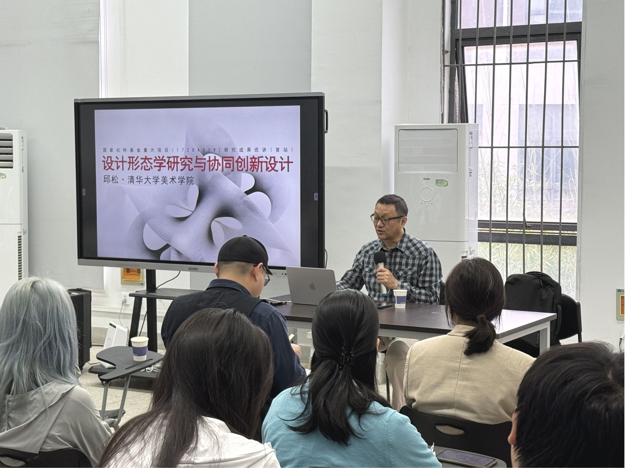 邱教授对设计形态学独特的研究视角与研究成果讲解,深入地阐述了设计形态学的重要性和应用价值,并通过跨学科、跨领域的合作交流的案例,是推动设计创新的重要途径。他详细阐述了设计形态学与协同创新设计的核心理念,展现了设计元素之间的相互关联和影响,拓展了师生的设计思路和研究视野。