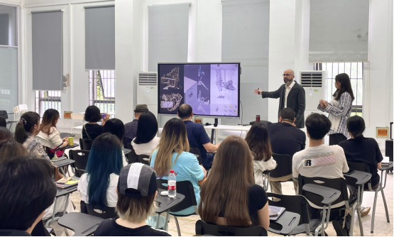 2024年6月11日上午 ,由工业设计学院、国际交流与合作处、现代公共视觉艺术设计研究中心共同邀请,芝加哥艺术学院巴勃罗·加西亚教授来湖北美术学藏龙岛校区进行学术交流,开启了工业设计学院《开物课堂》系列第六期讲座,交流活动在藏龙岛校区A6教学楼209教室举行,学校师生积极参与了活动,工业设计学院副院长张锐开场主持。