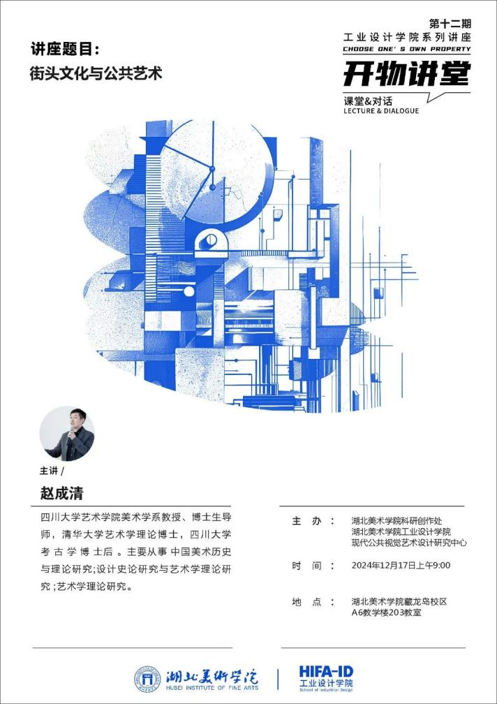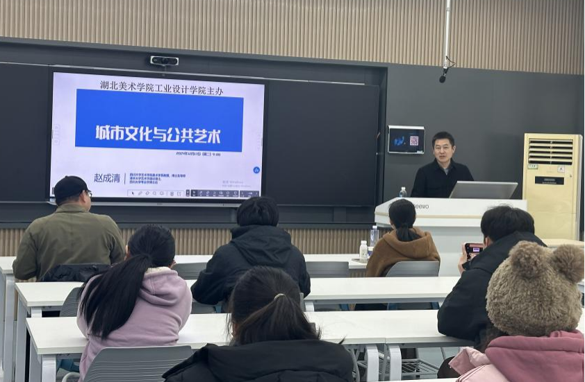 2024年12月17日上午,我院邀请四川大学艺术学系赵成清教授,在A6-203智慧教室为学院师生带来题为《街头文化与公共艺术》精彩讲座。本场讲座由工业设计学院副院长张锐主持。
