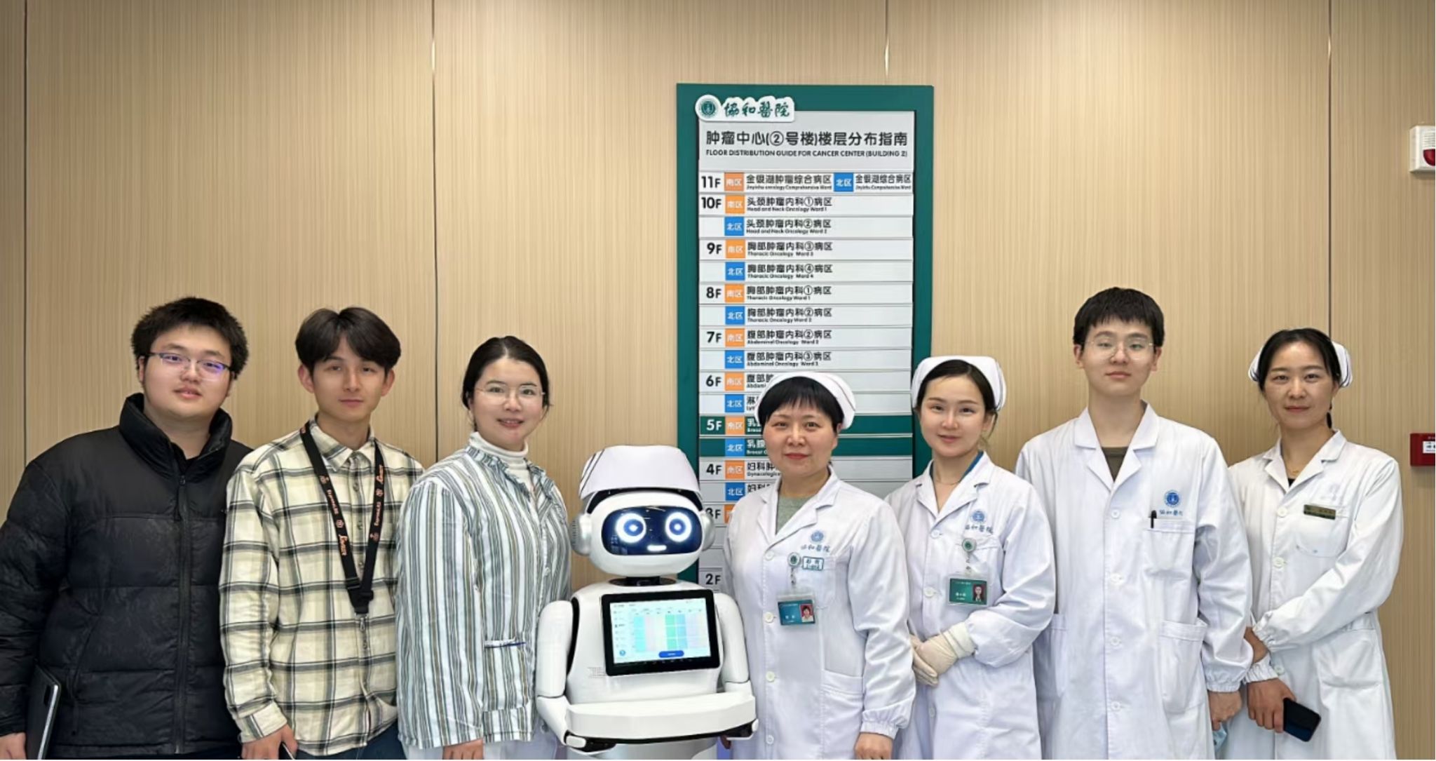 积极组织师生团队开展“校地、校企”合作实现产教融合、艺科融合。创新设计团队入驻鄂州华中科技大学工业研究院,积极推动“居家养老系统及照护机器人”项目进行科技创新孵化,响应湖北省政府办公厅《关于加快培育新质生产力 推动高质量发展的实施意见》号召“就地孵化、就地转化”。目前,创新设计团队已经完成第四代陪护机器人样机的设计制作工作,进入华中科技大学同济医学院附属协和医院、鄂州市鼓楼街道花园社区幸福食堂及老人家中试用,自去年8月投入至花园社区养老中心使用以来,已服务超过1600多人次,成为服务人员和老年用户的得力助手。