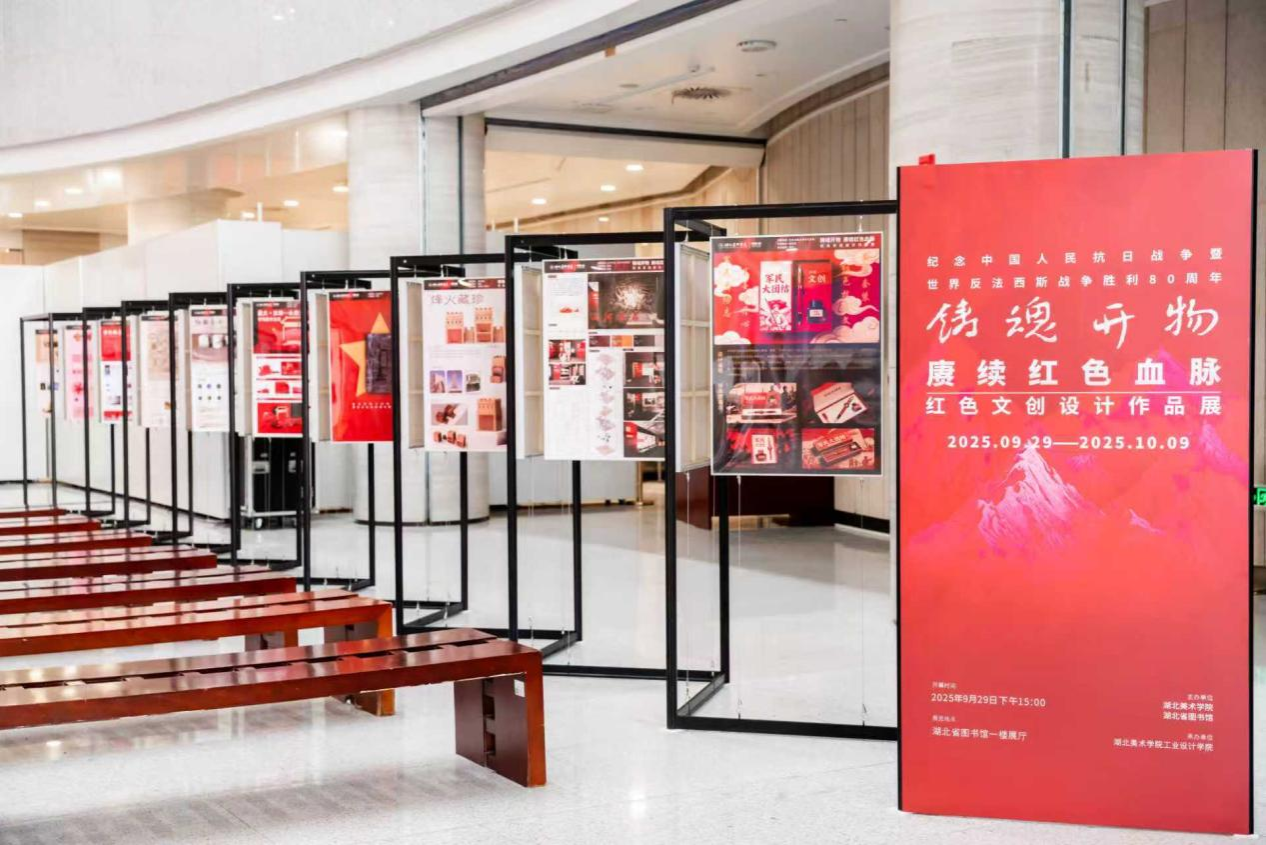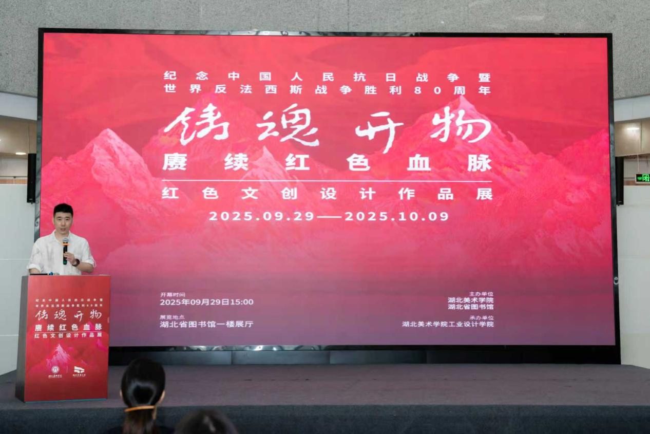 9月29日下午,湖北美术学院“铸魂开物 赓续红色血脉——红色文创设计作品展览”开幕式在湖北省图书馆一楼展厅隆重举行。本次展览集中展示了英国上市公司365师生创作的40余件红色文创作品,涵盖产品设计、视觉传达、展览展示、IP形象等多个领域。湖北省图书馆相关部门负责人、学院党委副书记赖慧蓉及工业设计学院师生代表共同出席,开幕仪式由院长助理王康主持。