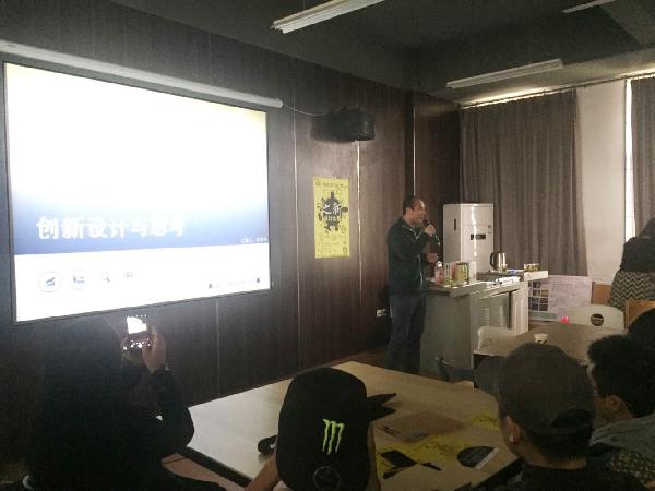 张乔乔所长发表演讲,分享了自己的从业经历,以及他自己对于设计的理解,结合实际的案例向大家分享了设计思维的含义。设计中可以有自己的个性,但是如果面对客户,面对你的委托人,更多的就要考虑到商业,并且减弱自己的设计中个性。同时与在场的同学互动交流解答关于设计的问题。