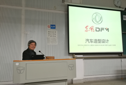 在讲座开始时,郑教授向我们展示了他今天的讲座的四个基本内容,分别包括:东风造型设计的考量成分和要素、东风造型的数字化设计和模型设计、依托东风平台课题,推动设计研究成果的转化以及设计工作的经历与交流这四个方面。