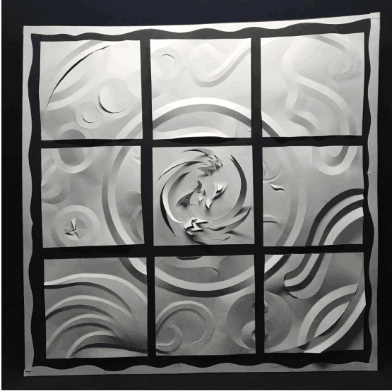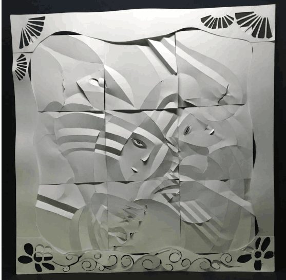 此类作品为学生优秀作品展示,作品在一定程度上传承了古代雕工技艺的外形,同时也融入各种时尚新颖的元素,既有传统的文化气息,也蕴涵时代发展的潮流。同时,作者从世界名画中吸取灵感,融合中西方元素,利用折纸的方式表现出来;并填入矢量曲线素材,表达特殊的意境,呈现出抽象形象。