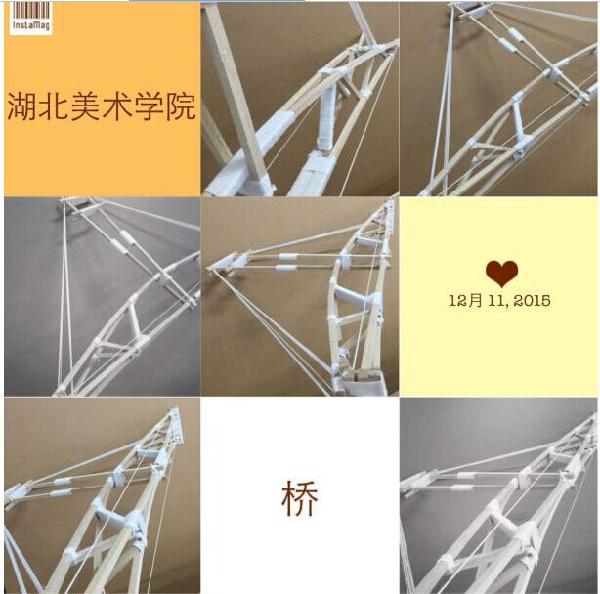 2015年12月11日,湖北美术学院工业设计系2013级产品设计专业《造型设计基础》课程作品展在A6教学楼2楼展厅展出。此次课程以由两个课题组成,为期三周,前两周以瓦楞纸板为材料设计制作能够承受人体重量的组合家具,第三周是以泡桐木线条为材料设计制作桥类承重结构练习。