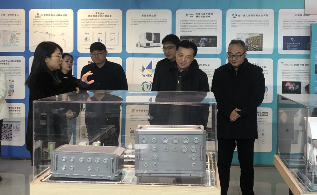 D+M工业设计小镇由武汉市江楚开物科技有限公司(浪尖设计集团控股子公司)运营,以“一小镇六组团”创新模式推进集群式发展,以设计创新为核心,整合产业链资源、研究应用开发、基础支持体系和创新孵化平台为一体,助力武汉发展工业设计、模具制造等工业服务业。张以林一行在武汉市江楚开物科技有限公司总经理李少康、副总经理汪琴的带领下,参观了D+M创新设计中心、CMFT创新研究中心、创新孵化平台等特色服务平台。参观结束后,双方进行了深入的交流座谈。