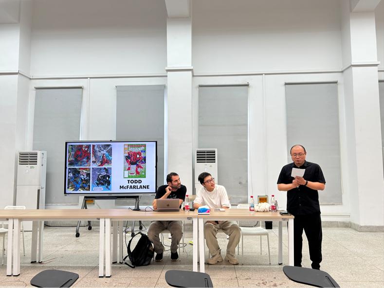 Thompson教授以美术创作为主题,深入讲解在美术和设计当中如何激发灵感,直击当下设计教育与实践中的一个关键议题:在追求效率与功能的洪流中,设计过程有时过于依赖预设的方案和数字化工具,而忽略了“动手制造”本身所蕴含的探索性力量与直觉智慧。Thompson教授展示了大量跨越设计与艺术的有趣案例,并说道“一个作品有两种不同的解读方法”,每一个项目都清晰展现了“动手制作”如何成为突破思维瓶颈、催生原创方案的引擎。分享会尾声,Thompson教授与现场师生展开了热烈互动,针对各种问题结合自身经验给出了切实建议,并分享了以“如何将艺术融入任何一个设计思维里”为题的论文。