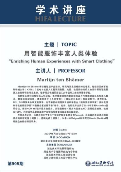 5月29日下午,在工业设计学院A6-209教室,工业设计学院邀请马泰·腾博默教授作为主讲人,为学院师生带来一场题为《用智能服饰丰富人类体验》专业讲座。讲座由工业设计学院副院长张锐主持,产品设计系师生代表参加本次讲座。