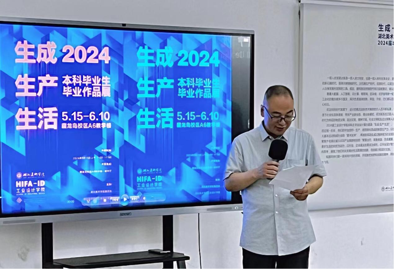 5月20日上午,工业设计学院2024届本科生毕业设计作品展在A6教学楼一楼展厅举办开幕式,学校党委常委、纪委书记、监察专员张以林,工业设计学院领导班子、毕业设计指导教师团队及2024届毕业班同学们共同参加本次活动。活动由工业设计学院院长李梁军主持。