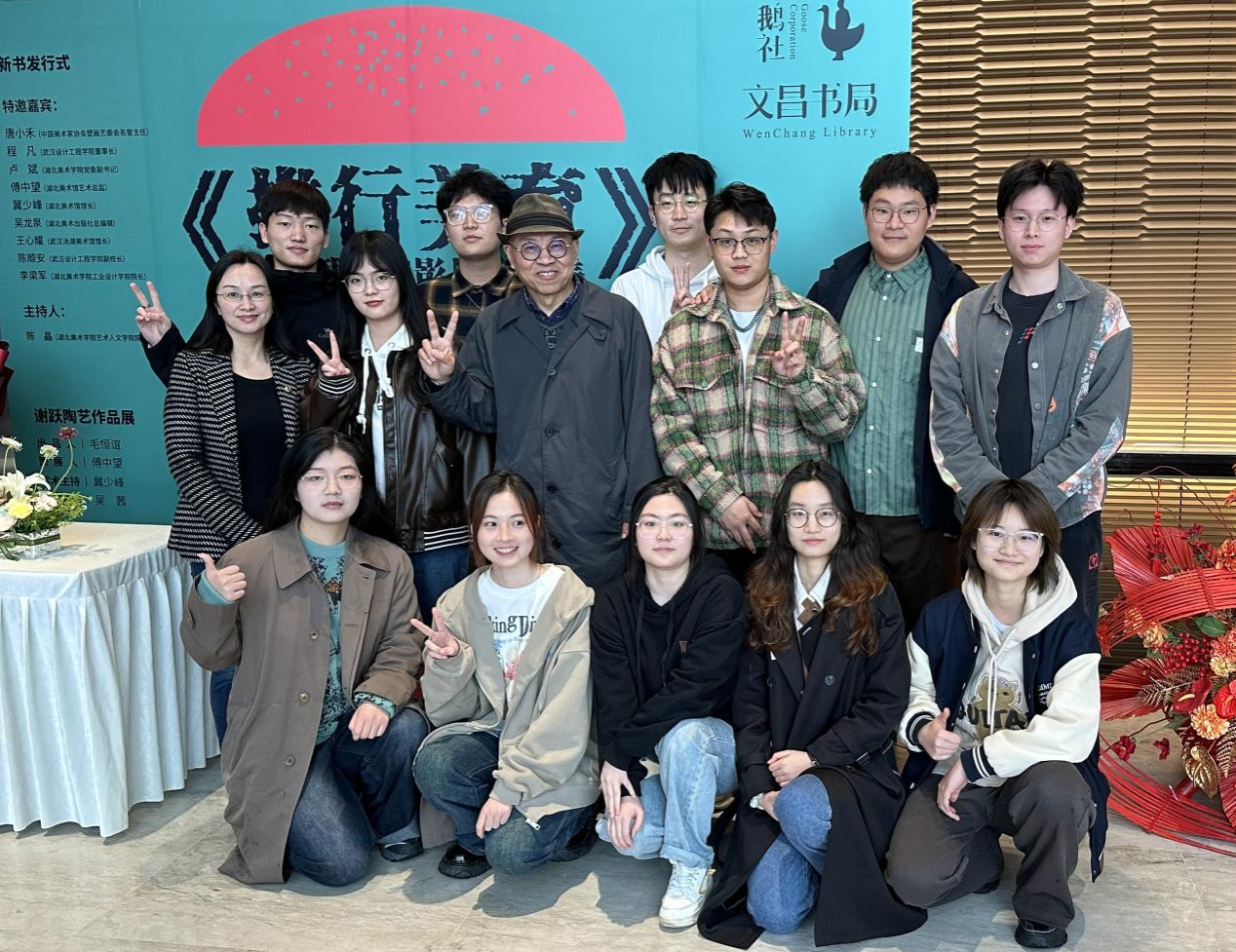 3月17日下午,工业设计学院党政领导、师生代表前往文昌书局·鹅社书店参加谢跃教授《推行美育——武艺旧影与老湖美》的新书发行式。