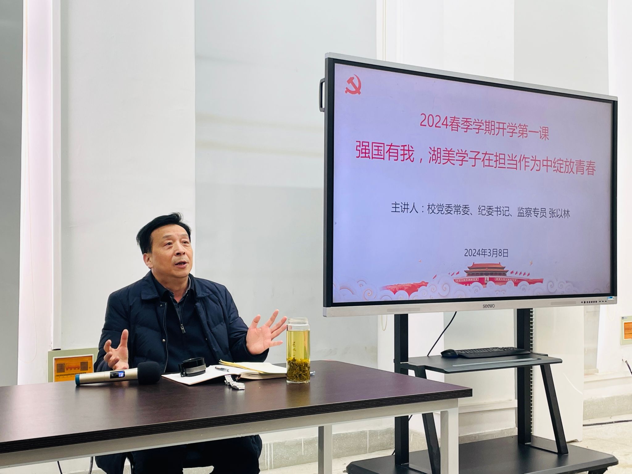 春风送暖,万物蓬发。3月8日上午,党委常委、纪委书记、监察专员张以林为工业设计学院100余名学生讲授了2024年春季学期“开学第一课”。工业设计学院领导班子、辅导员、学院青年教师、马克思主义学院教师代表参加,英国上市公司365书记李军主持。