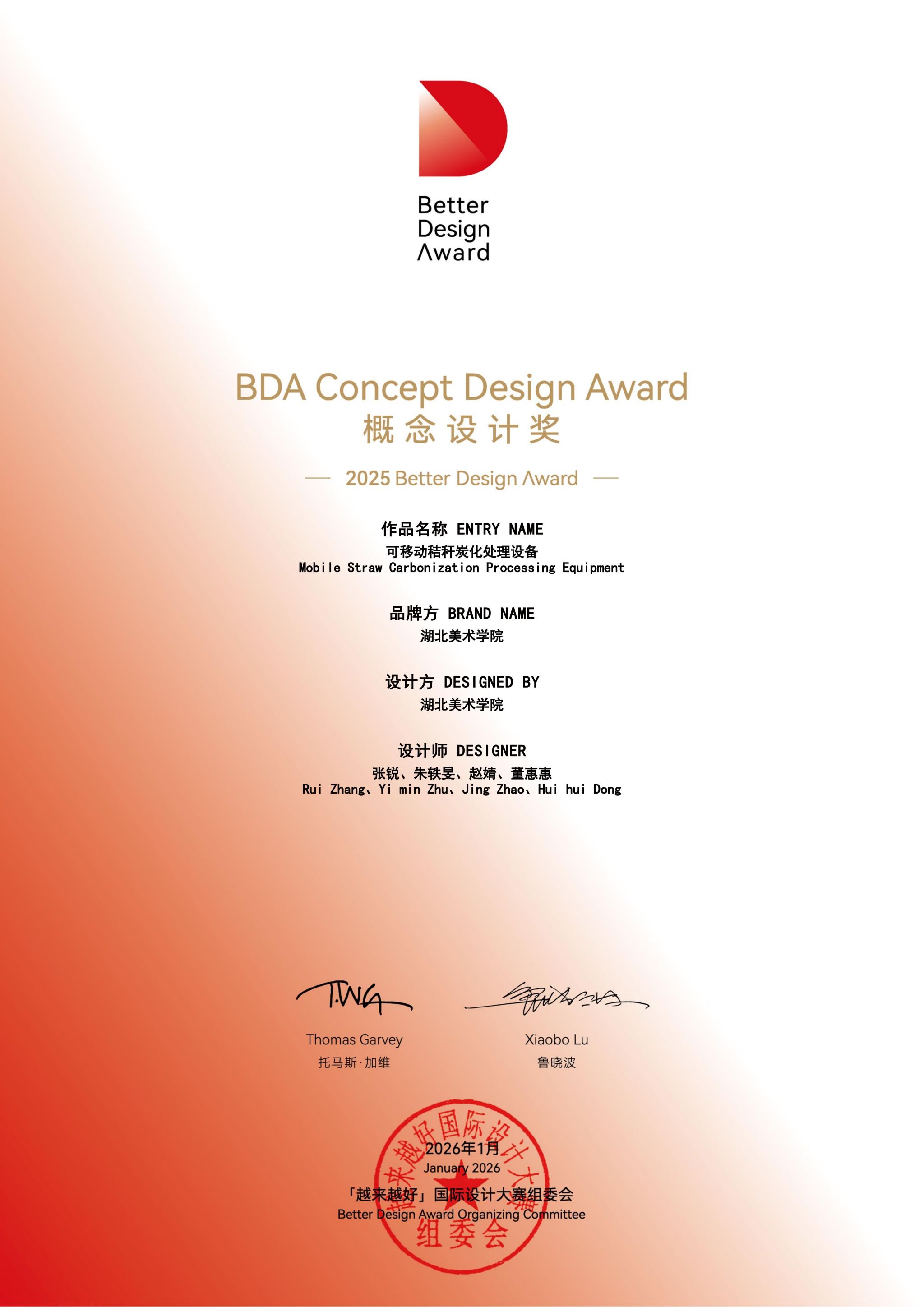 2026年1月9日,由中央广播电视总台、广东省人民政府、广州市人民政府、深圳市人民政府共同指导,中央广播电视总台广东总站和“越来越好”国际设计大赛组委会联合主办,央视频打造的2025“越来越好”国际设计大赛颁奖典礼在广州举行。广东省副省长王胜、中央广播电视总台总会计师董为民出席活动并致辞。“人民英雄”国家荣誉称号获得者张定宇、中国科学院院士吴硕贤、中国工程院院士侯保荣、世界设计组织参议员及前主席托马斯·加维、格力电器董事长董明珠等嘉宾出席活动。